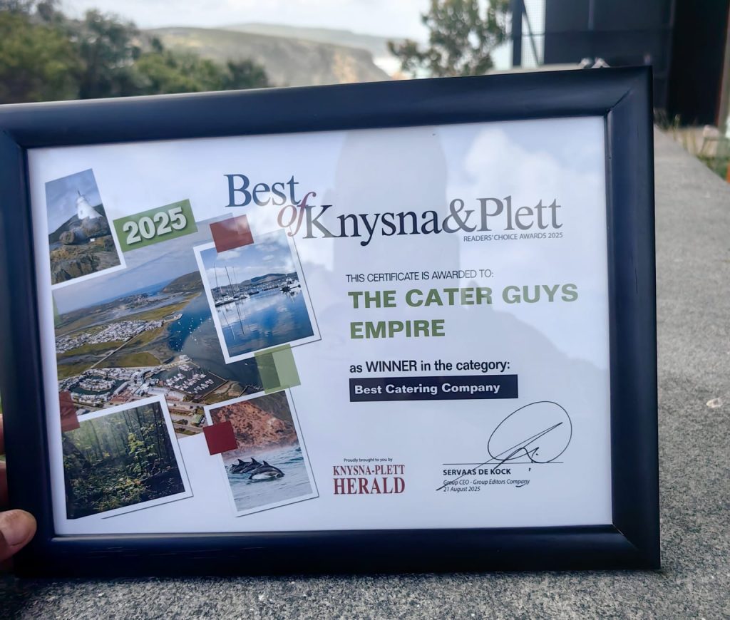 The Cater Guys Empire is a catering company based in the Garden Route, voted as the best catering company in Knysna and Plettenberg bay! We curate bespoke experiences for those who seek something truly unforgettable, blending fine food, exceptional service, and breathtaking locations across South Africa.